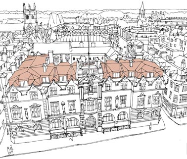 Read more.Work has started on a major refurbishment project at the Rhodes Building, High Street Oxford, directly opposite St Mary’s tower. We are creating a new mathematical, folded ‘origami’ copper roof over an Edwardian baroque building, adding an extra floor, and altering the facade at ground level to create a more welcoming elevation and views from the High Street into Oriel College, adding a lift, and re-landscaping St Mary’s Quad to make the college more accessible and create opportunities for theatre and May balls. The building, by Basil Champneys, another Trinity Cambridge architect, is Grade II* listed. The project will complete in 2014.